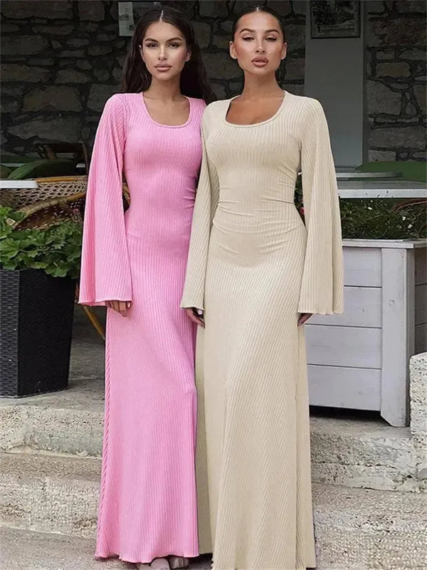 Eleganckie Sukienki Maxi | Prążkowany długi rękaw