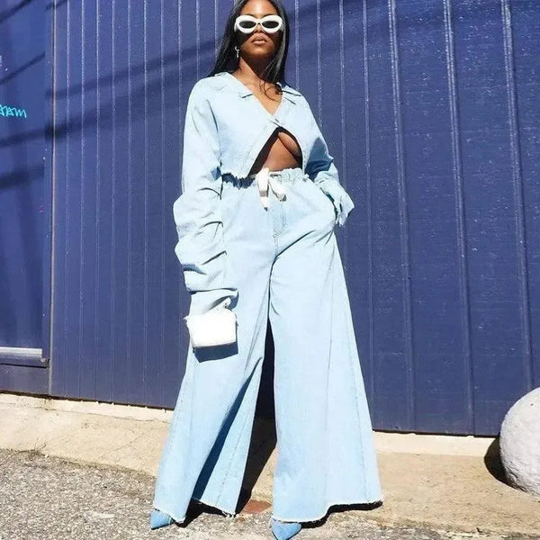 Opis produktu: Casual Loose Denim Suit Dwuczęściowa Odzież Damska