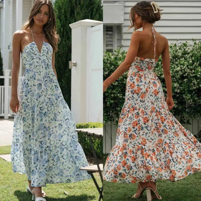 Szyfonowa długa sukienka patchworkowa bez rękawów z dekoltem V