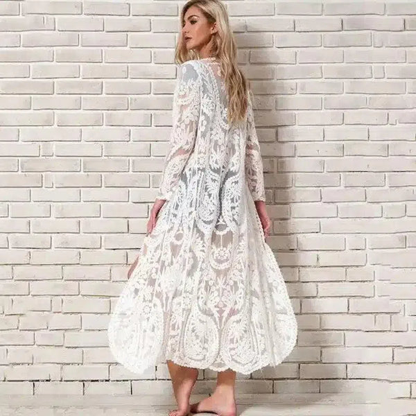 Koronkowa sukienka midi z długim rękawem dla kobiet
