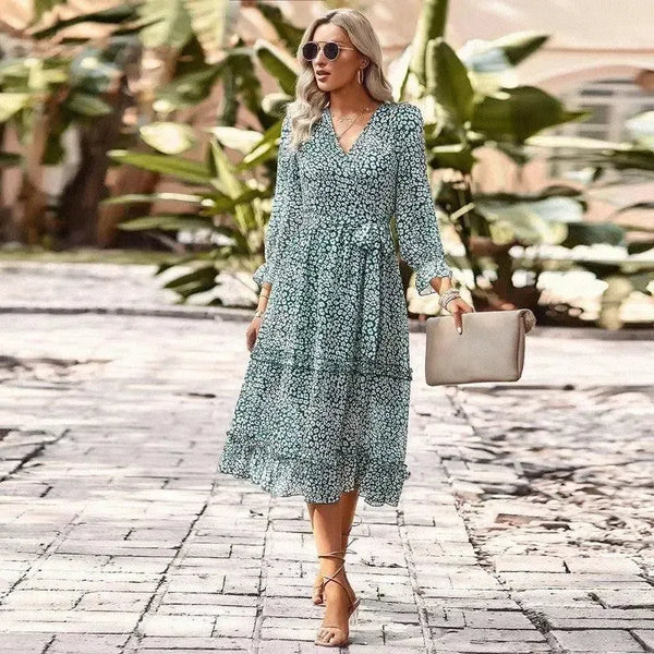 Temperament Elegancki dekolt V 34 Rękaw wiązany na ramieniu Kwiatowy