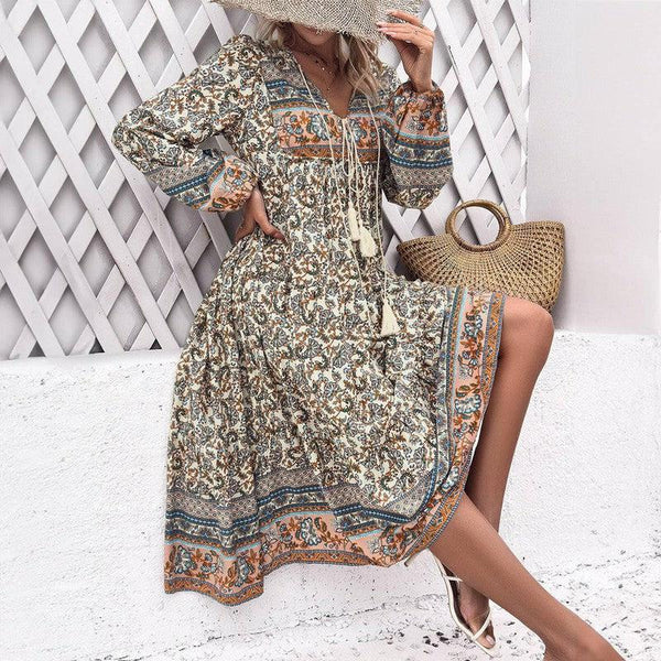 Moda damska Wakacyjna Maxi z długim rękawem i nadrukiem