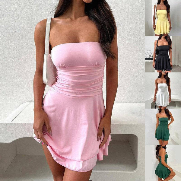 - Styl: Krótka sukienka z zabudowanym dekoltem inspirowana stylem Y2K
