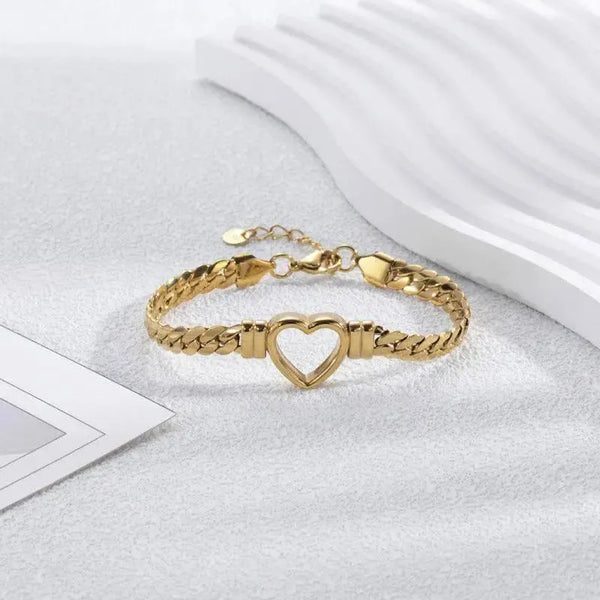Modna bransoletka ze stali tytanowej z prostym, wydrążonym sercem
